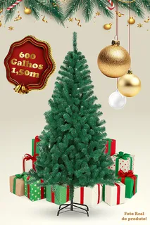 Árvore De Natal Pinheiro Canadense Luxo 1,50m 600 Galhos Redfin Verde Imperial Tradicional Premium Grande Cheia Realista Base Reforçada Montagem Fácil Decoração Natalina Elegante Durável