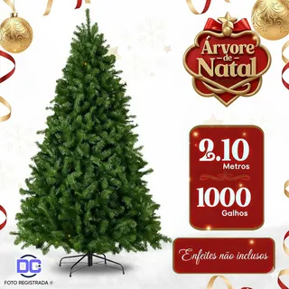 Árvore De Natal 2,10m Tradicional 1000 Galhos Verde Grande Pinheiro Luxo Cheia Decoração Papai Noel Premium Marca Dc