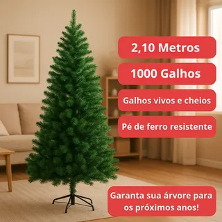 Arvore De Natal 2,10m Com 1000 Galhos Pé De Ferro Pinheiro Canadense Tradicional Verde Imperial Premium Luxo Grande Cheia Para Decoração Sala Casa