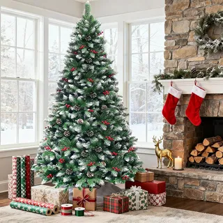 Árvore De Natal 1.8m Com Pinhas E Bagas 800 Galhos Decoração Arvore De Natal Grande 180cm Árvore De Natal Tradicional De Luxo Arvore De Natal Com Enfeites